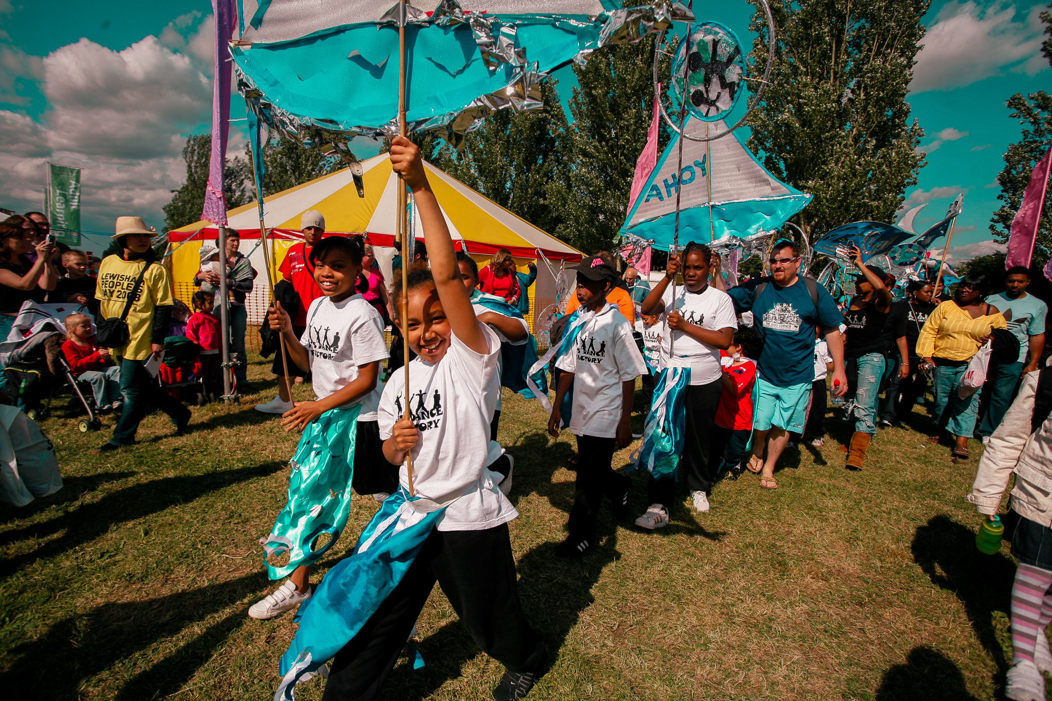 Documentation for the Taking Part Place Project, an Arts Council England initiative. The photography captured community engagement and cultural diversity at the Global Local Village and Taking Part Marquee in Mountsfield Park. These images record the role of participatory arts in building community cohesion.