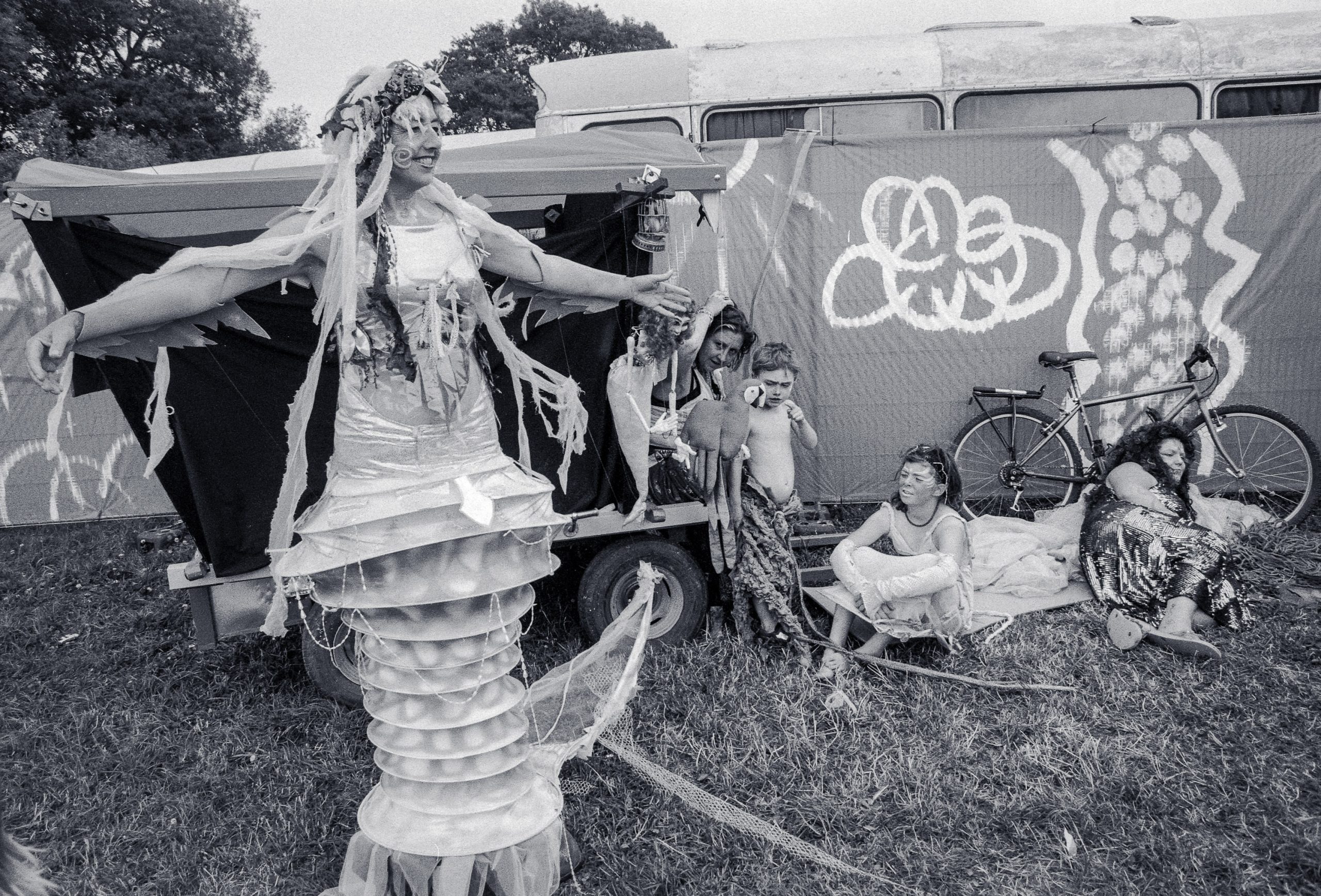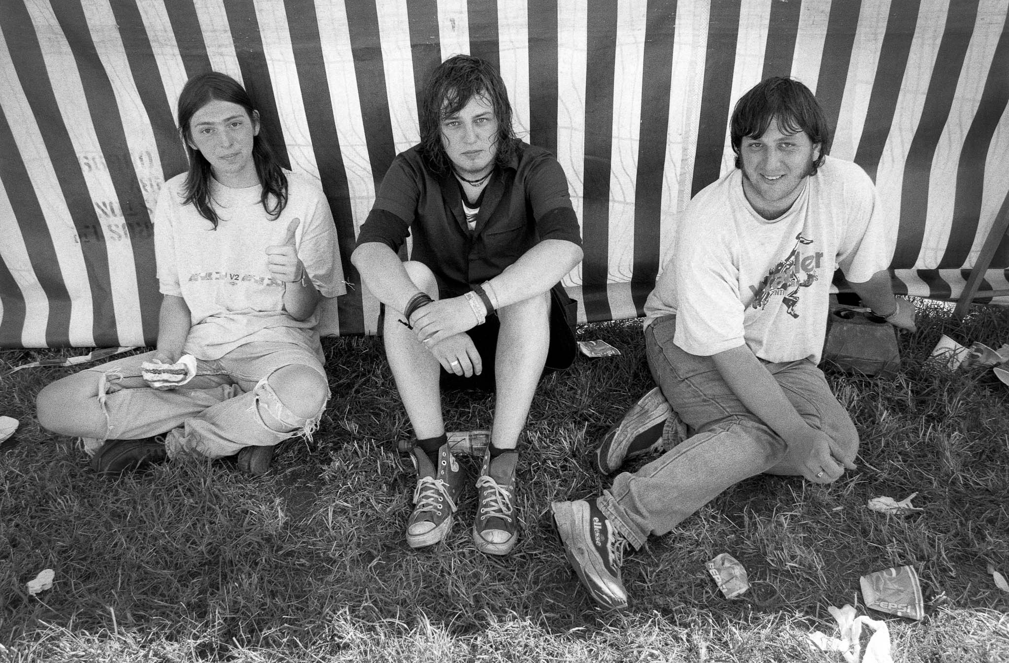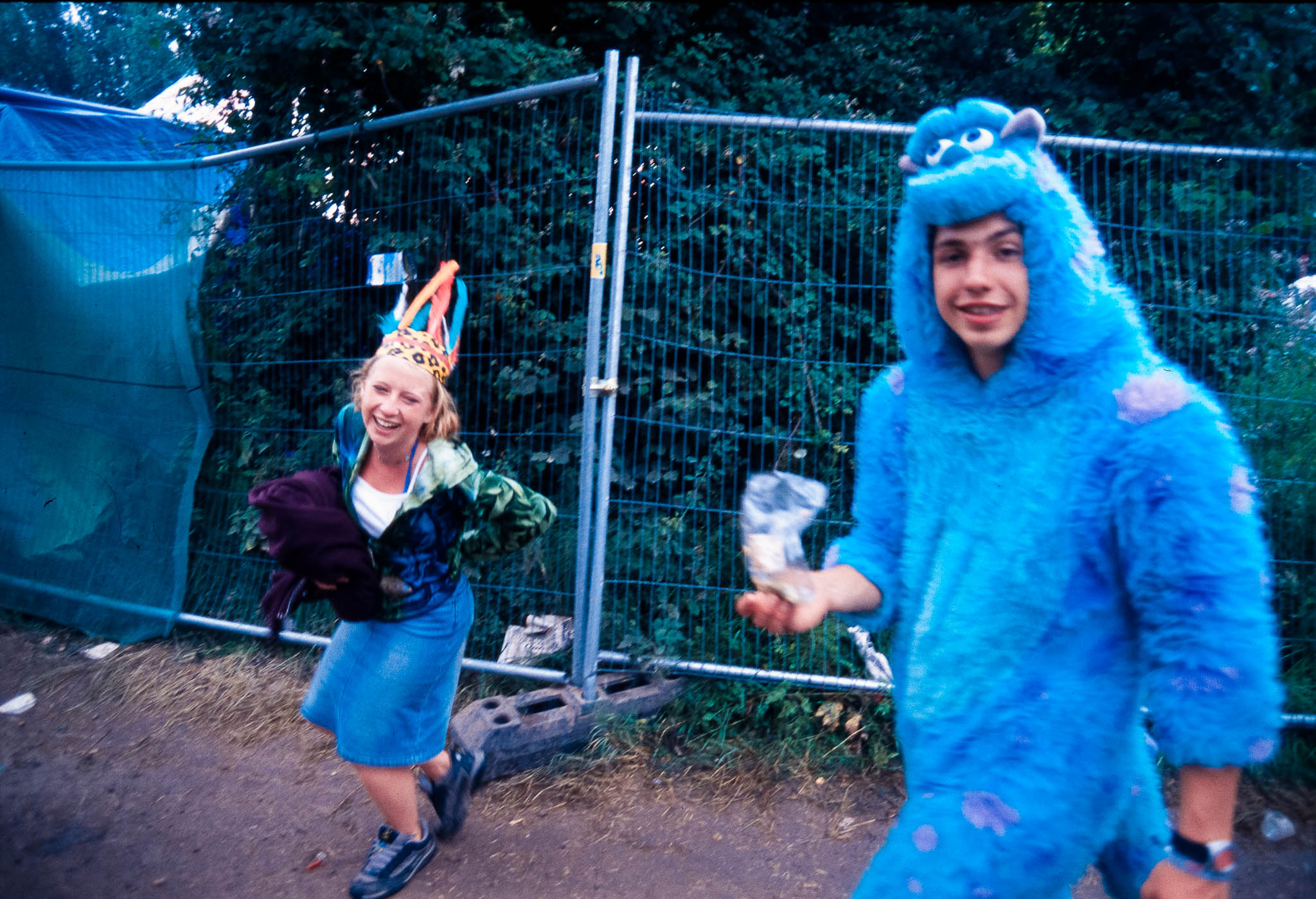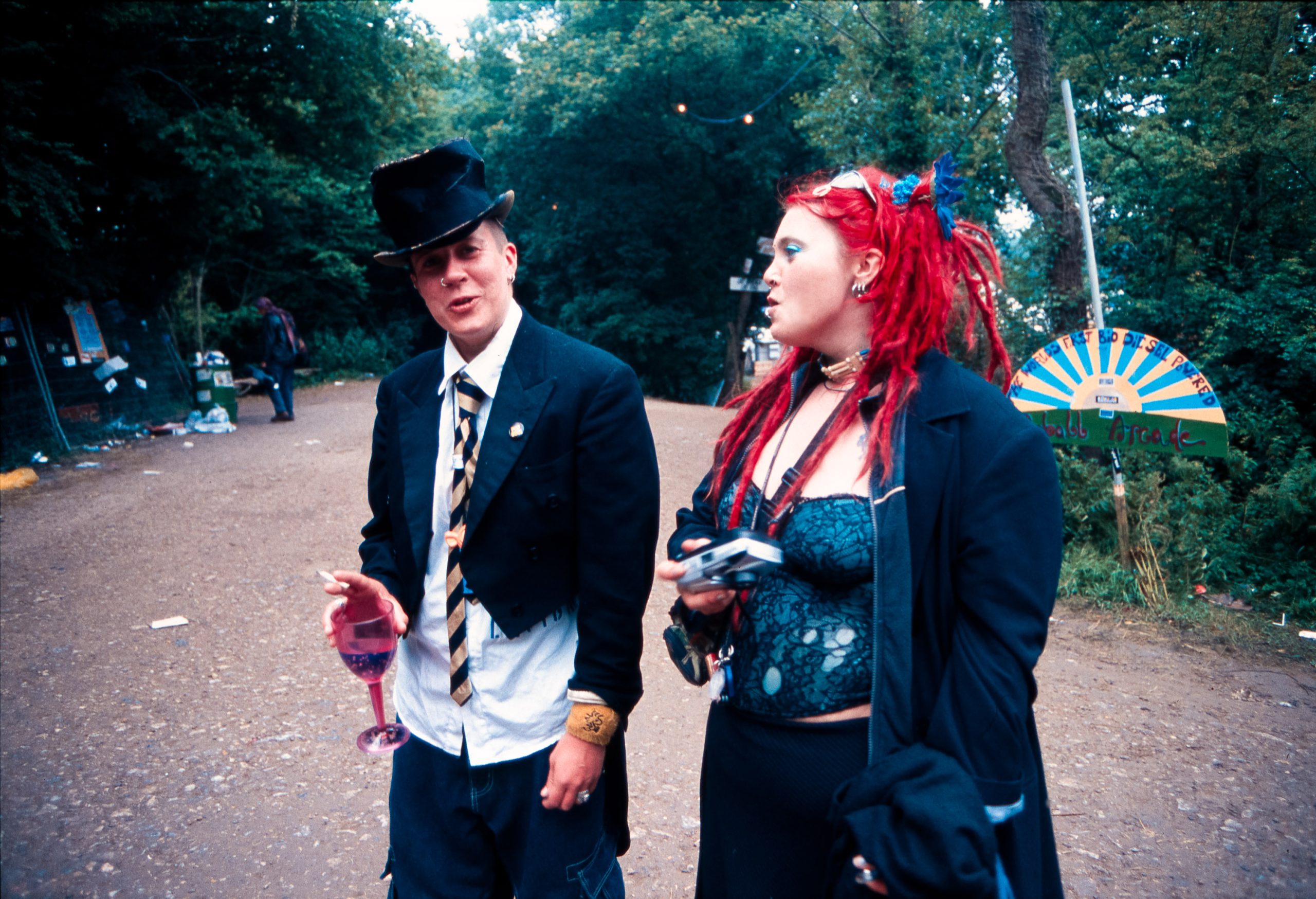The main reason we went to Glasto 03 was to enjoy the whole event—the music, the vibes, the perfect, sunny weather, and acts like R.E.M., Radiohead, and Fatboy Slim. The photos were just a fun side project; I took my film camera (brought my first digital Nikon D100 just a few weeks later to take to Ibiza) I used black and white and colour film to snap the atmosphere and colours as we wandered around.