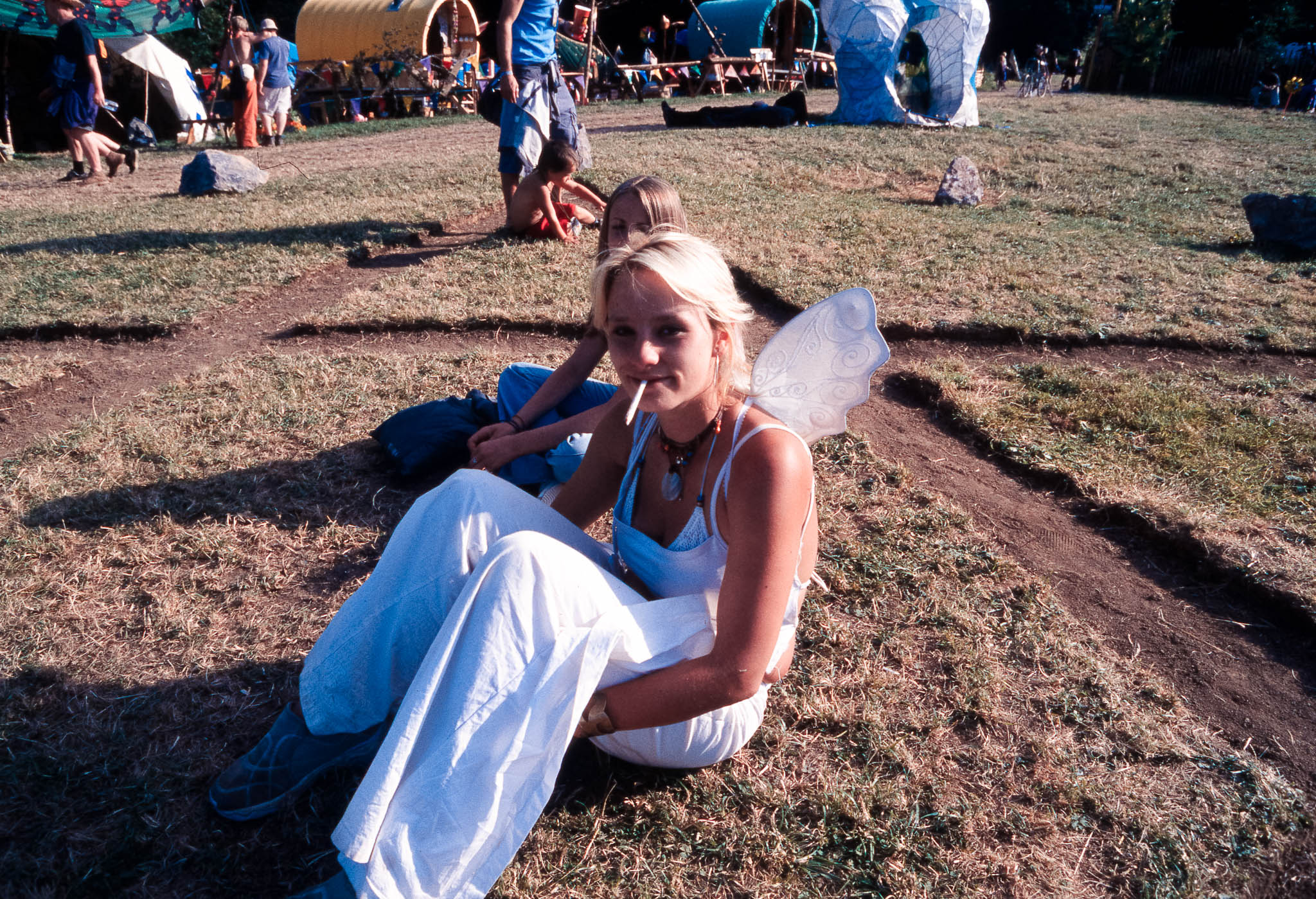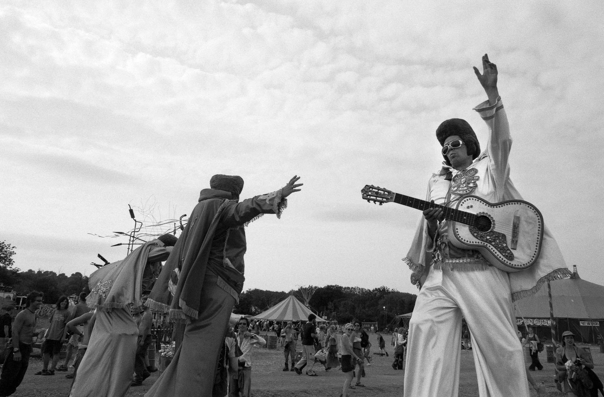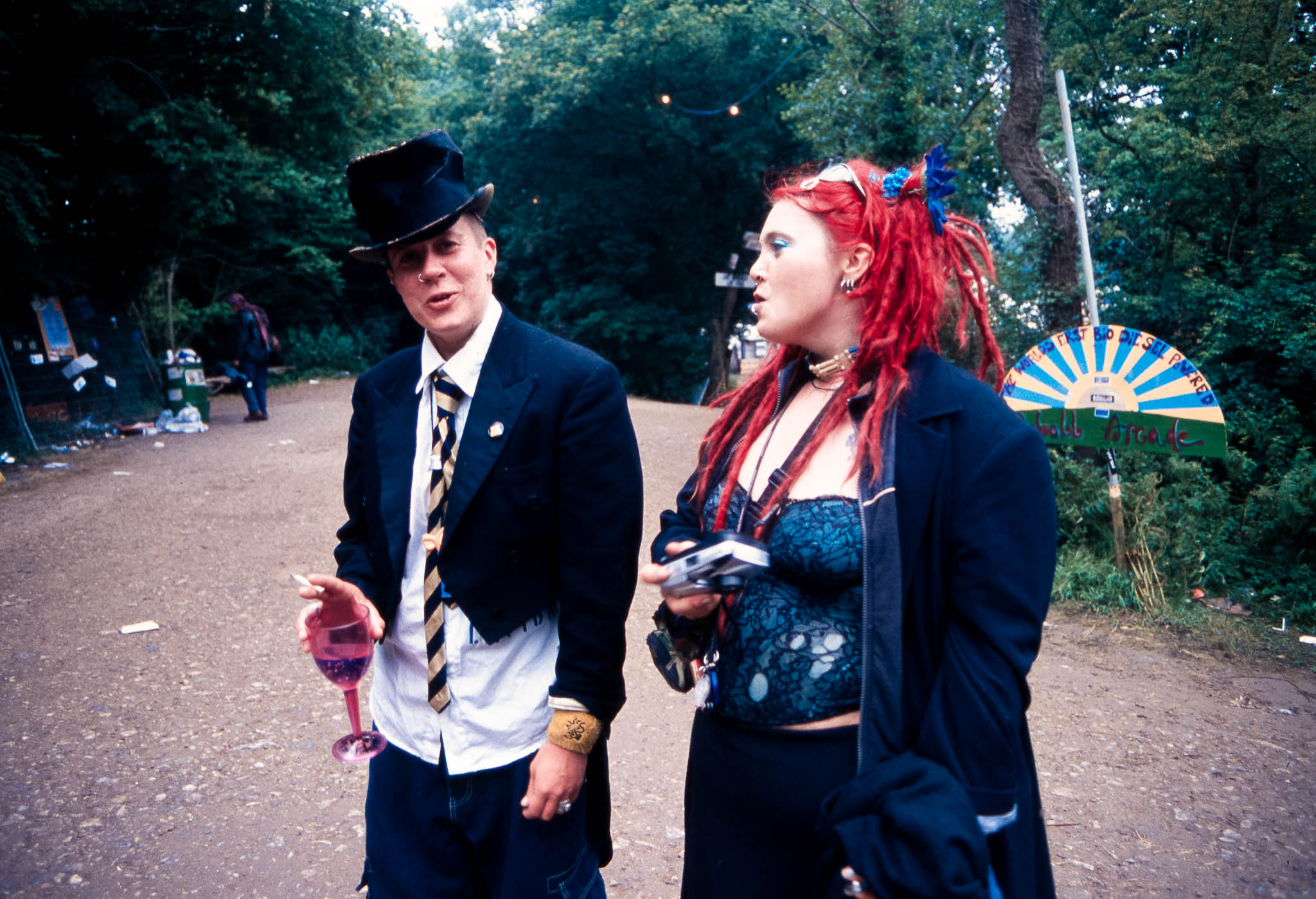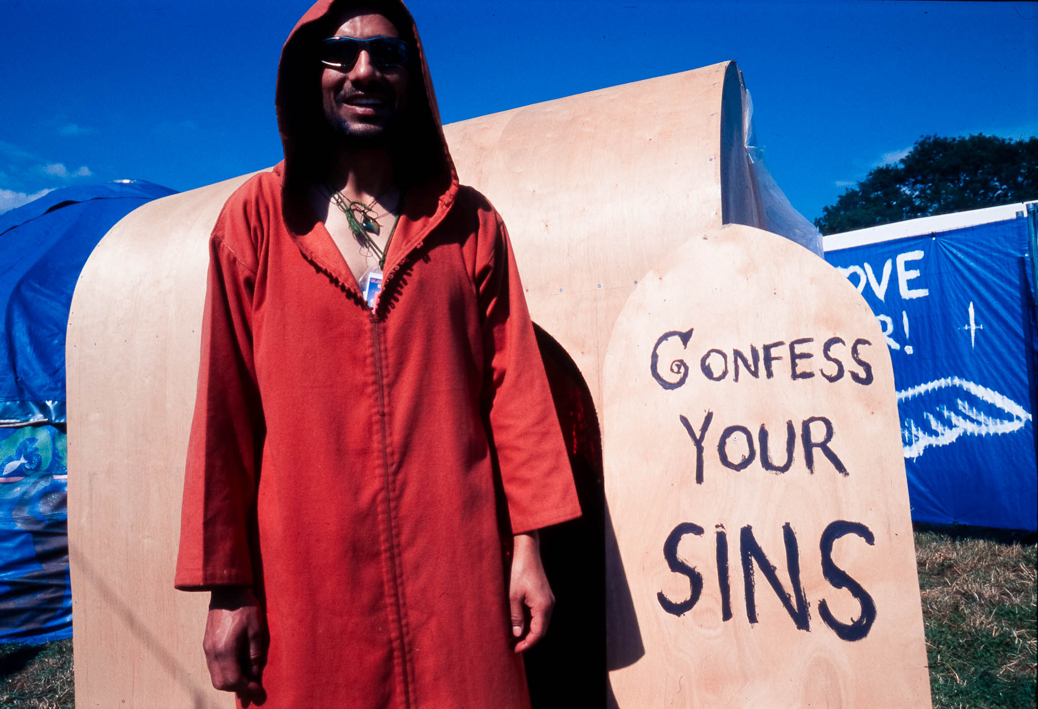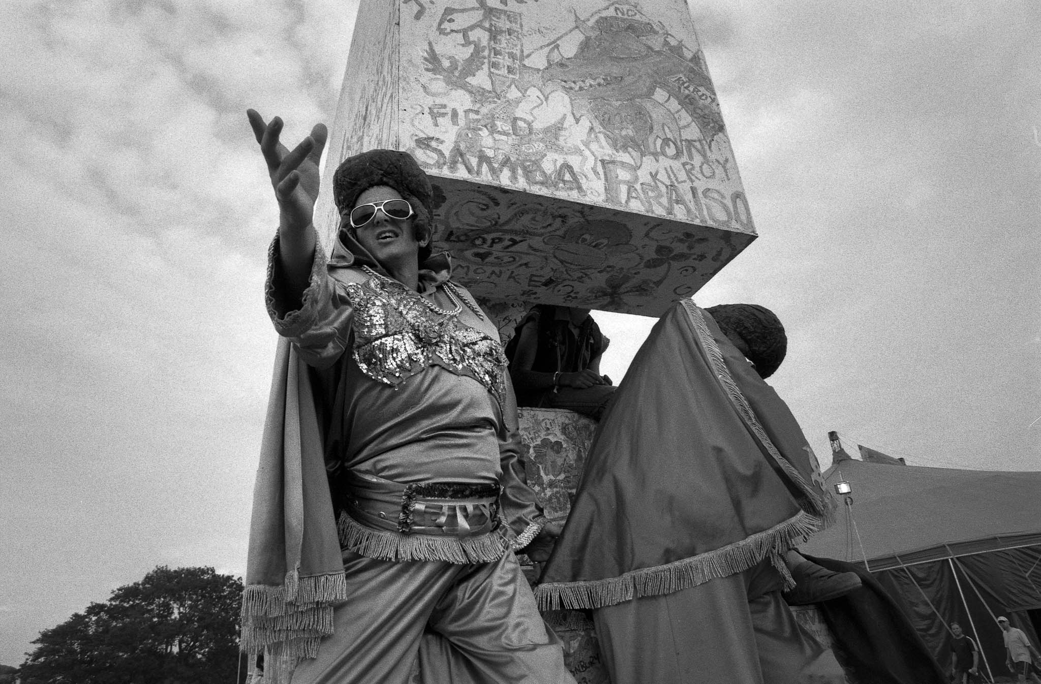 The main reason we went to Glasto 03 was to enjoy the whole event—the music, the vibes, the perfect, sunny weather, and acts like R.E.M., Radiohead, and Fatboy Slim. The photos were just a fun side project; I took my film camera (brought my first digital Nikon D100 just a few weeks later to take to Ibiza) I used black and white and colour film to snap the atmosphere and colours as we wandered around.