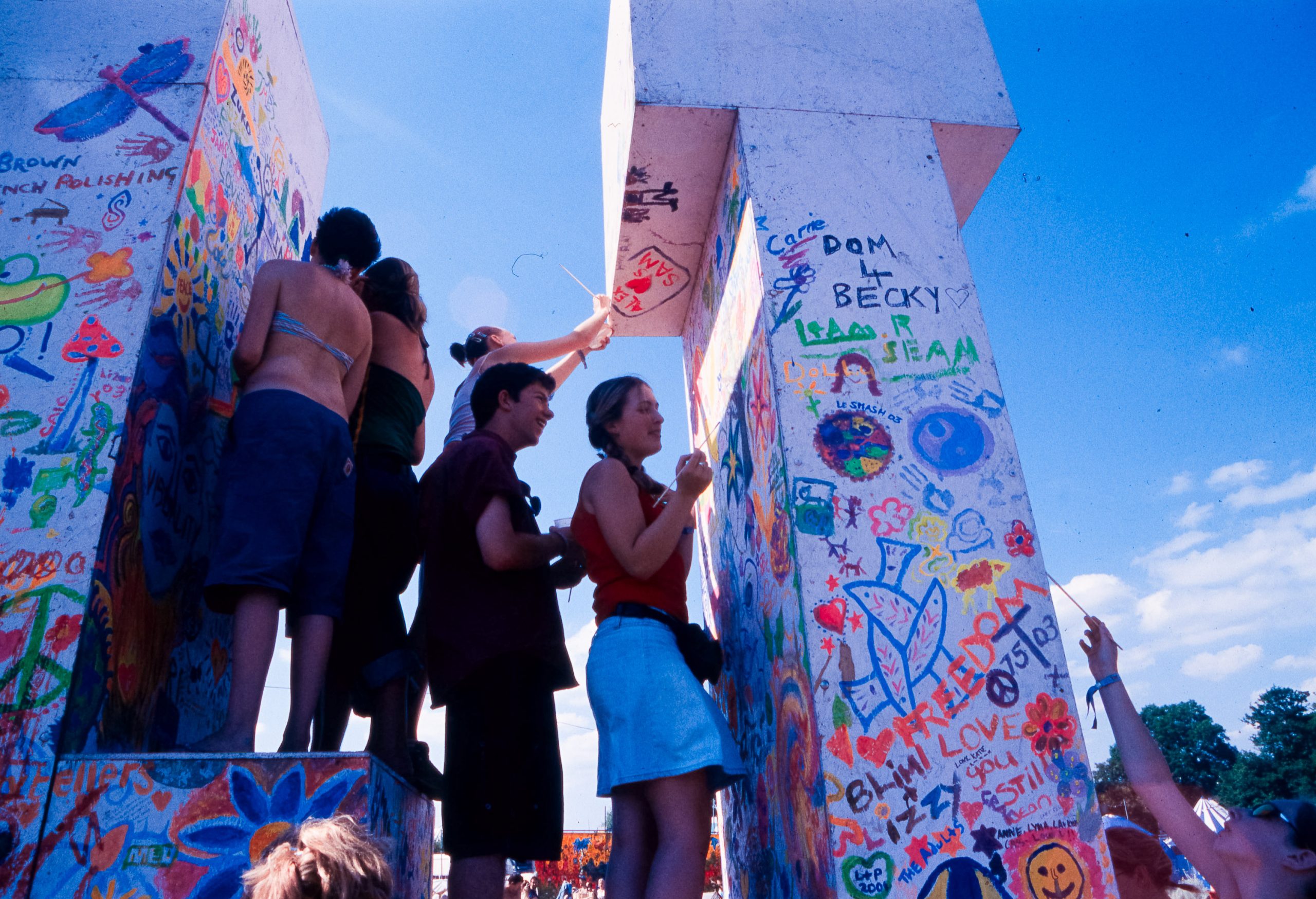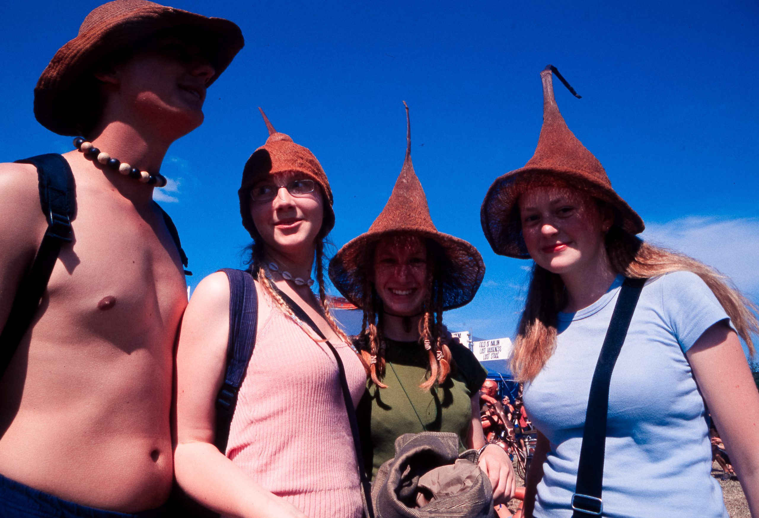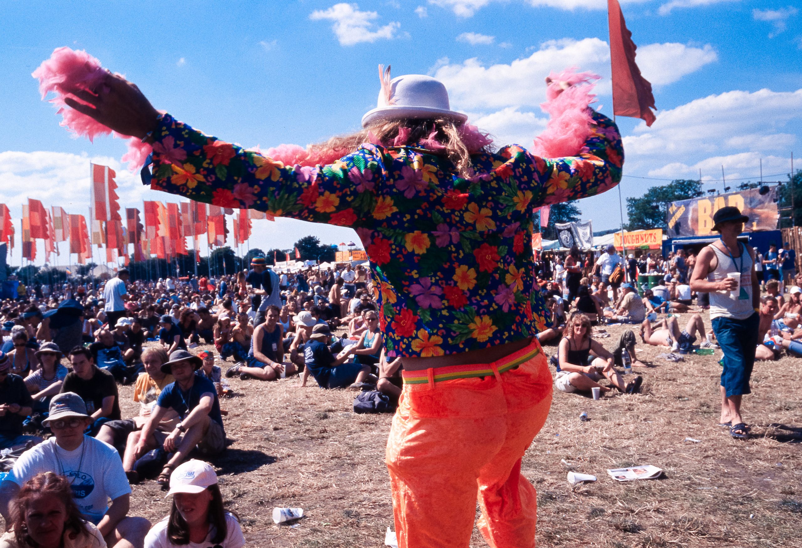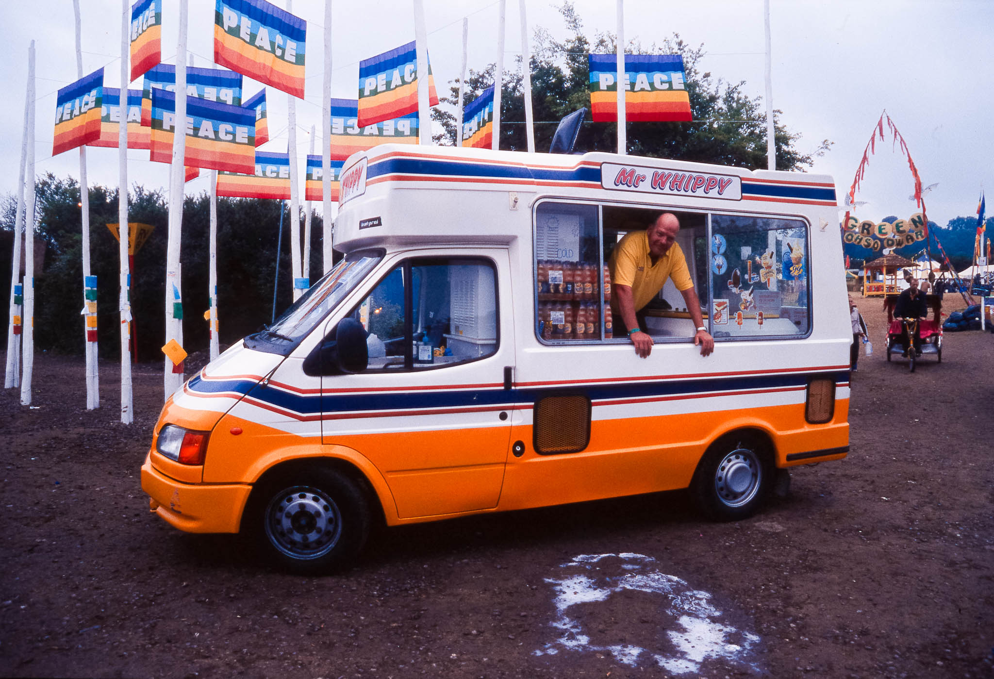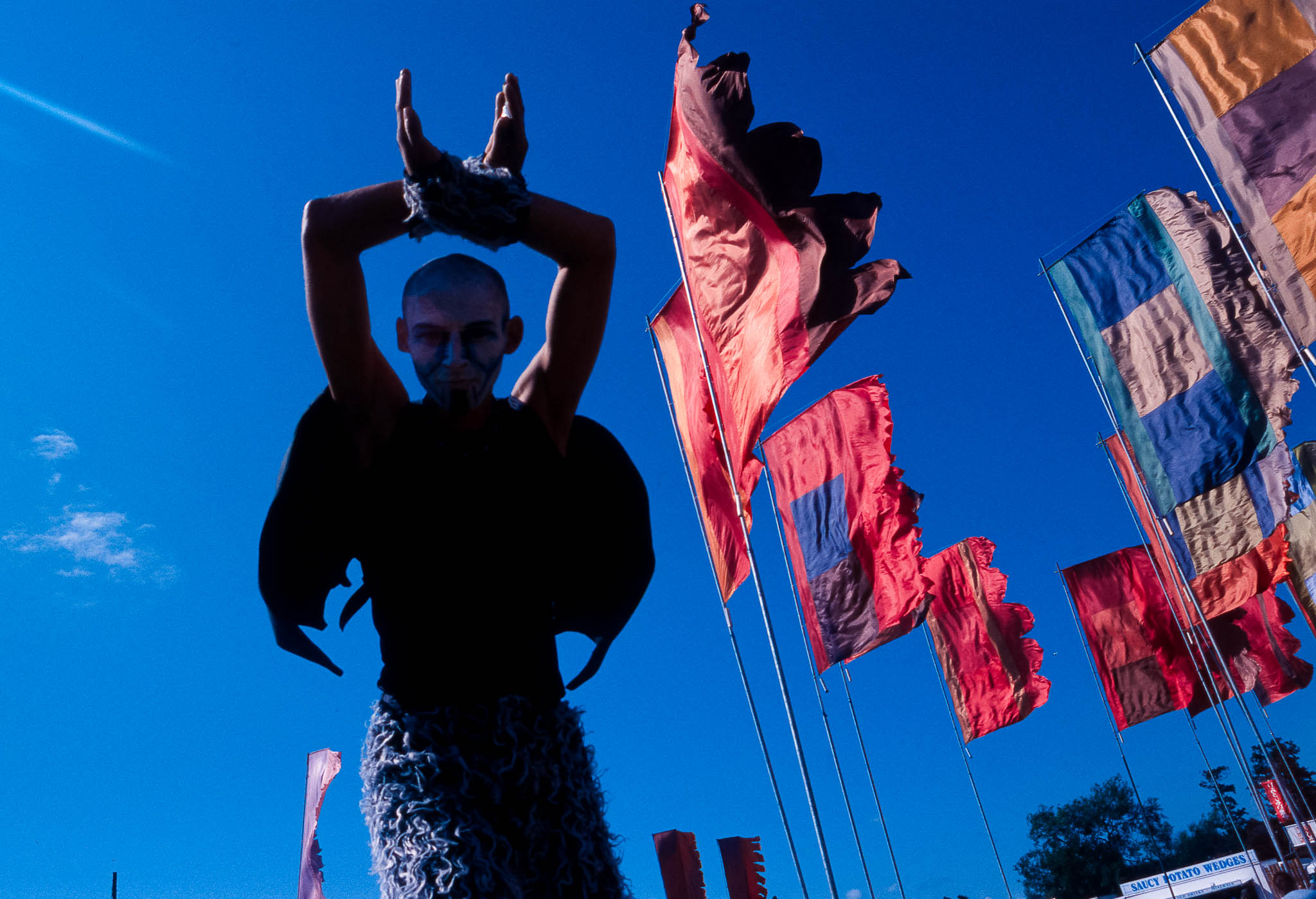 The main reason we went to Glasto 03 was to enjoy the whole event—the music, the vibes, the perfect, sunny weather, and acts like R.E.M., Radiohead, and Fatboy Slim. The photos were just a fun side project; I took my film camera (brought my first digital Nikon D100 just a few weeks later to take to Ibiza) I used black and white and colour film to snap the atmosphere and colours as we wandered around.