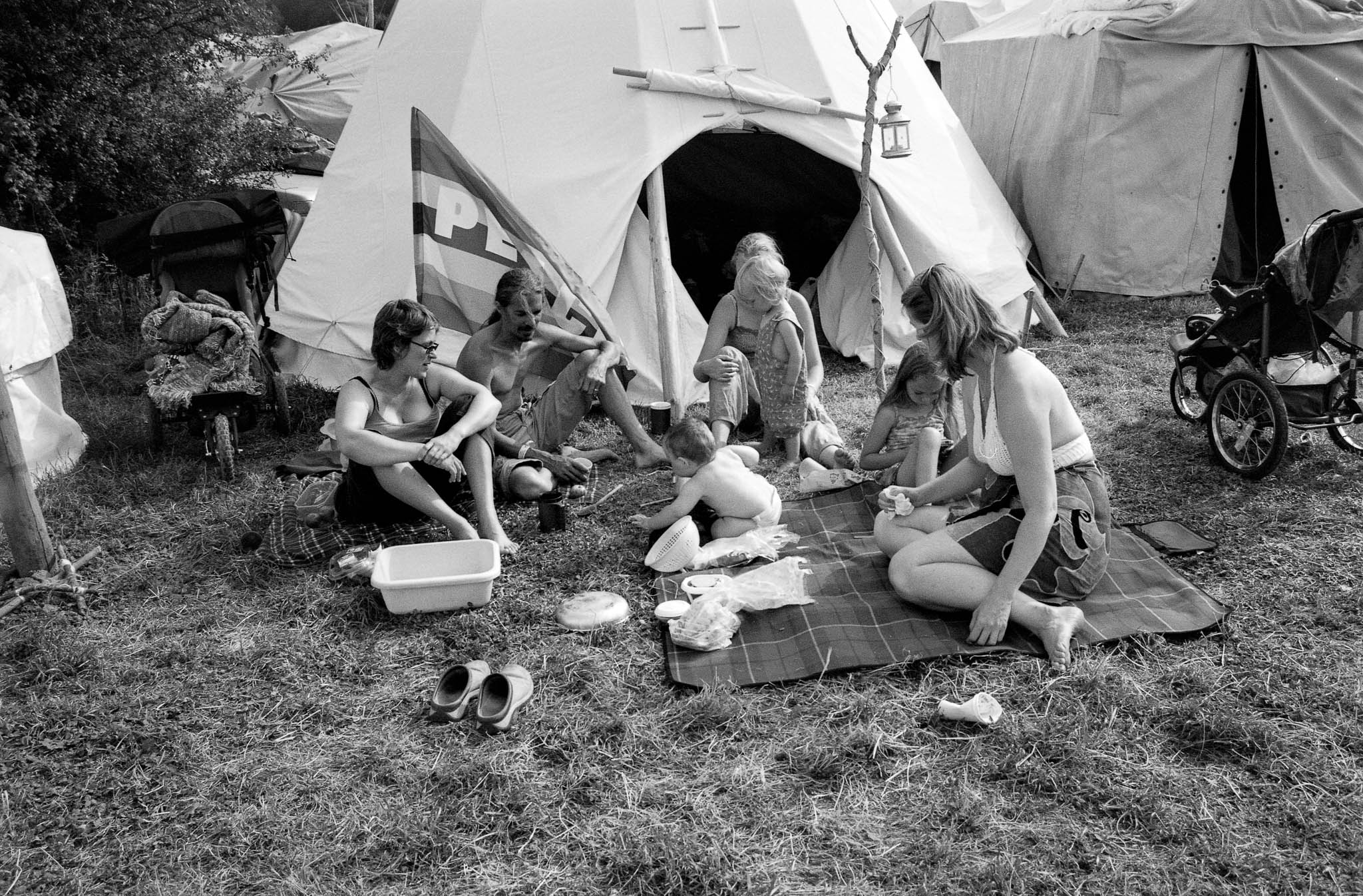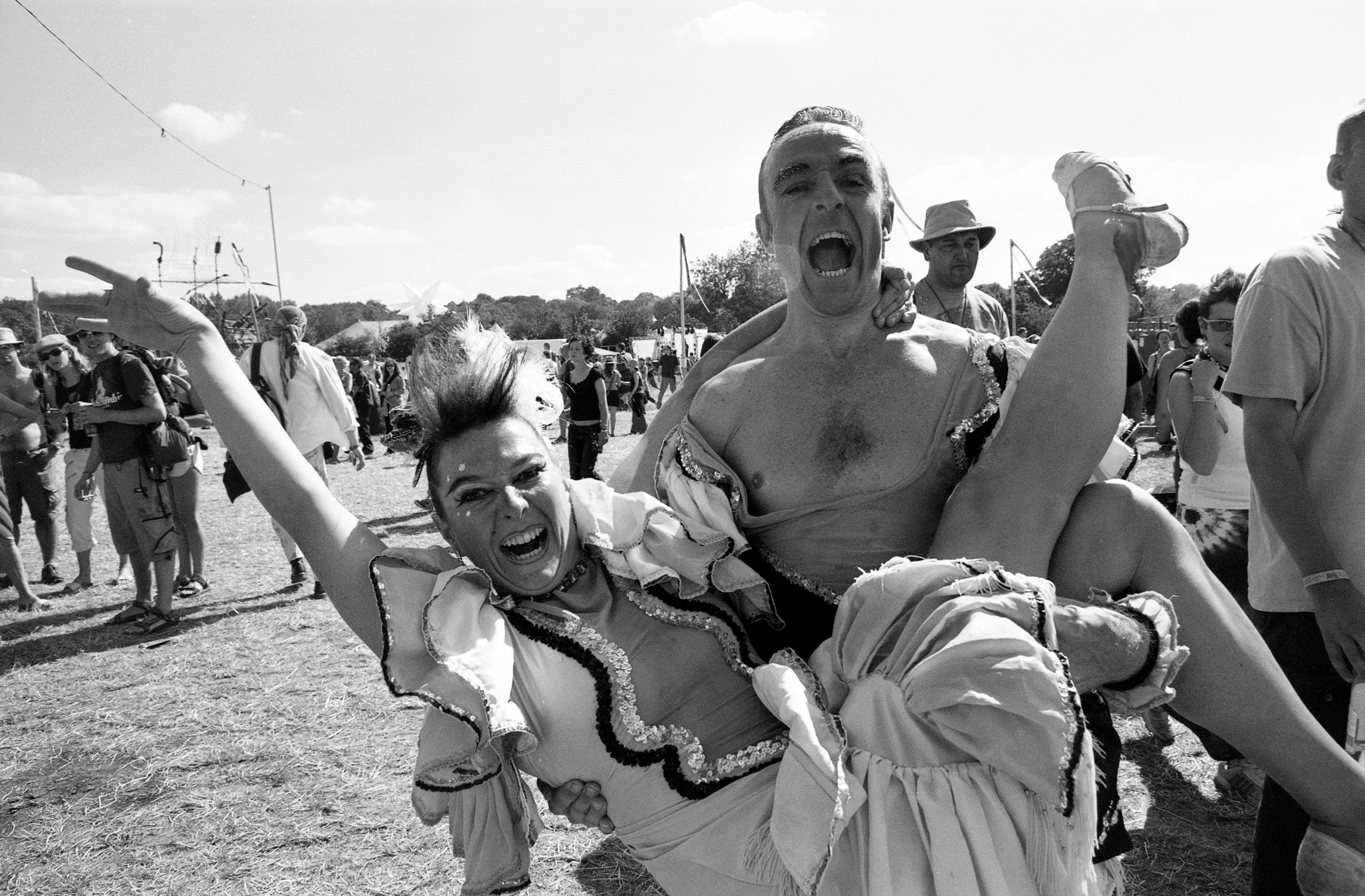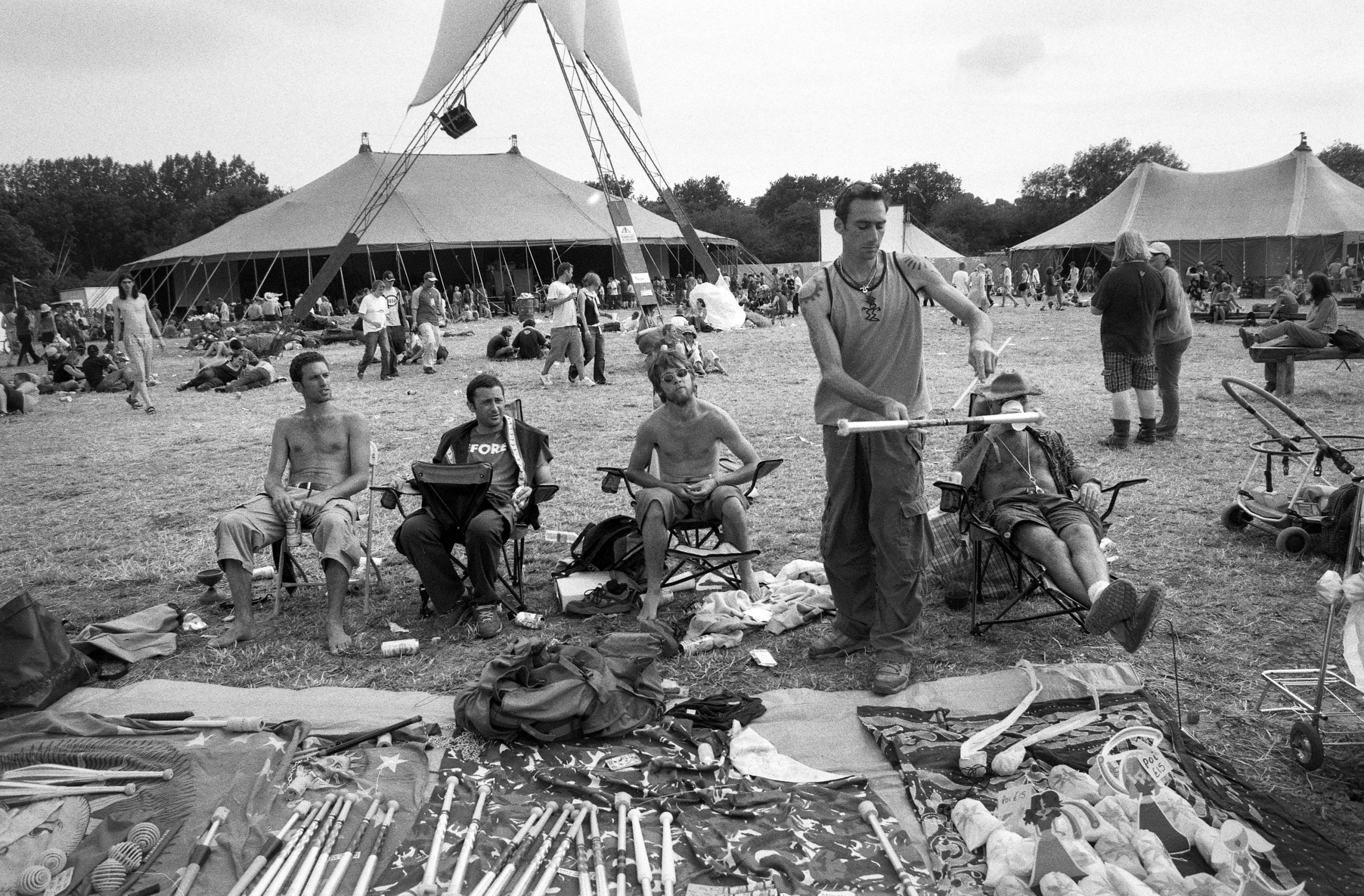 This archive features my Glastonbury reportage photography from 2003, documenting the festival at Worthy Farm on black and white and slide film. Glastonbury 2003 was officially declared a record-breaking success, with tickets selling out in under 24 hours to become the fastest-selling in the festival's history. It was widely acclaimed as 'the best yet' due to the combination of perfect weather, a chilled atmosphere, and a crime-free site