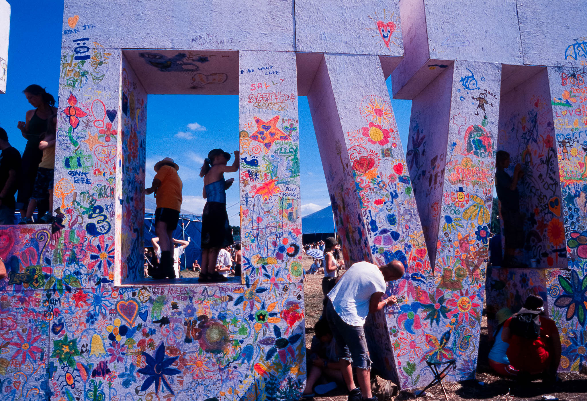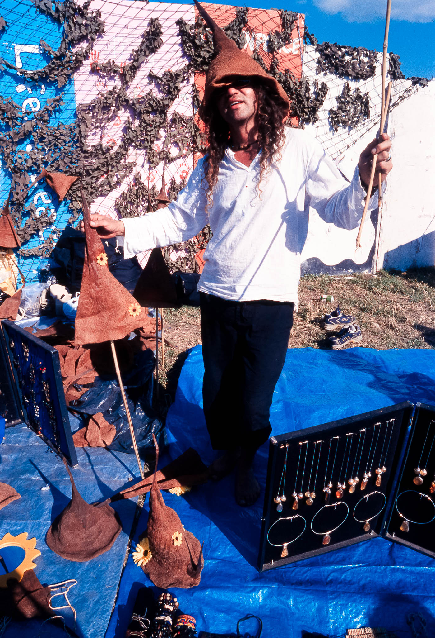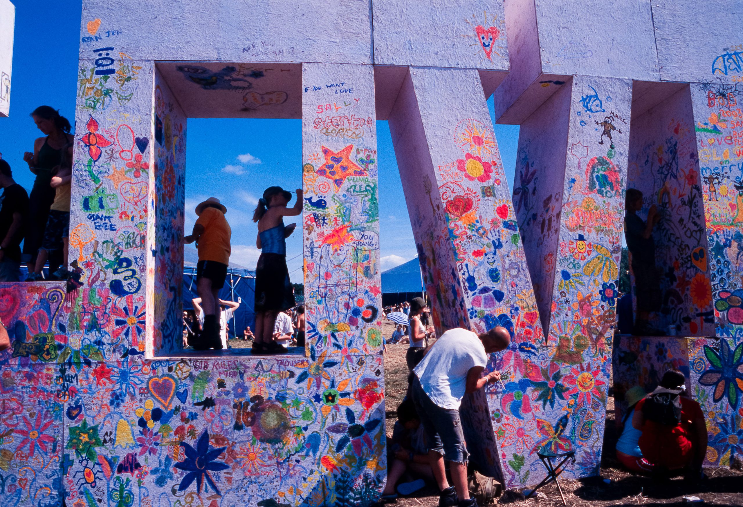 This archive features my Glastonbury reportage photography from 2003, documenting the festival at Worthy Farm on black and white and slide film. Glastonbury 2003 was officially declared a record-breaking success, with tickets selling out in under 24 hours to become the fastest-selling in the festival's history. It was widely acclaimed as 'the best yet' due to the combination of perfect weather, a chilled atmosphere, and a crime-free site