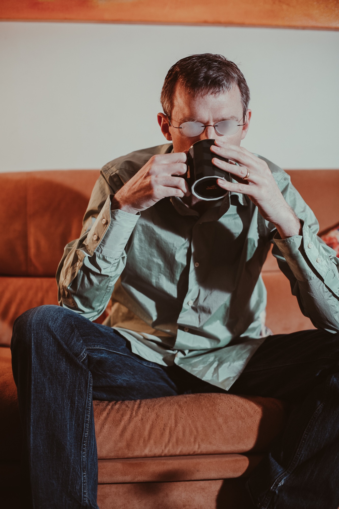 A number of my assignments took place in the subjects' private residences. This provided a different backdrop than a public location or a studio setting. The home environment and personal items provided a context, allowing for a portrait that captured a less public aspect of the subject's identity. These images serve as a unique visual record due to the private access granted.