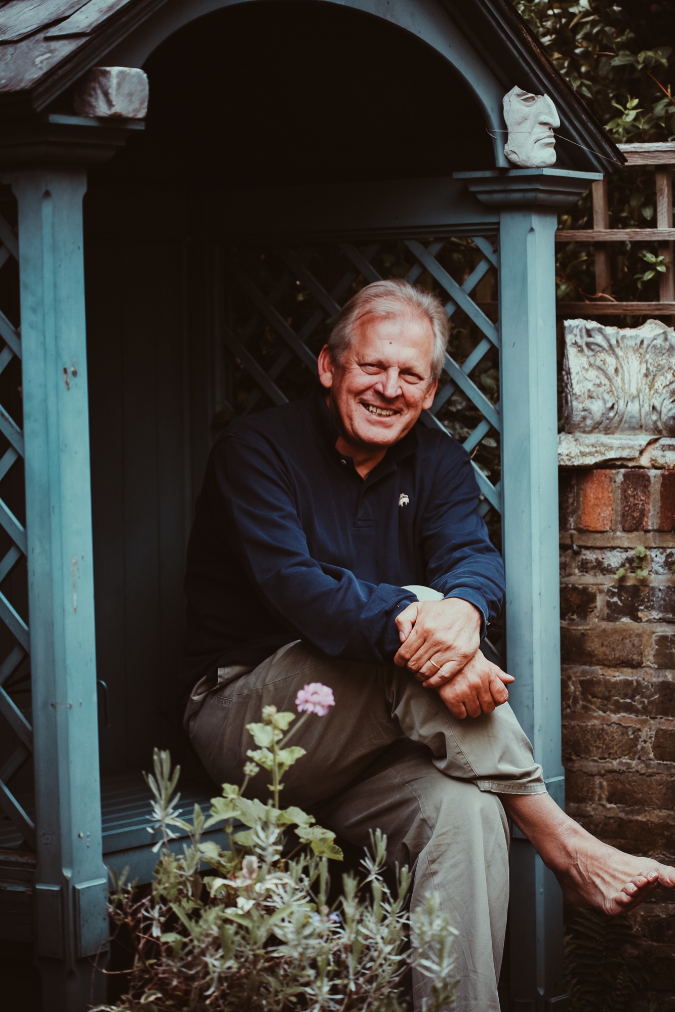 Bill Oddie in his garden, Hampstead, London
