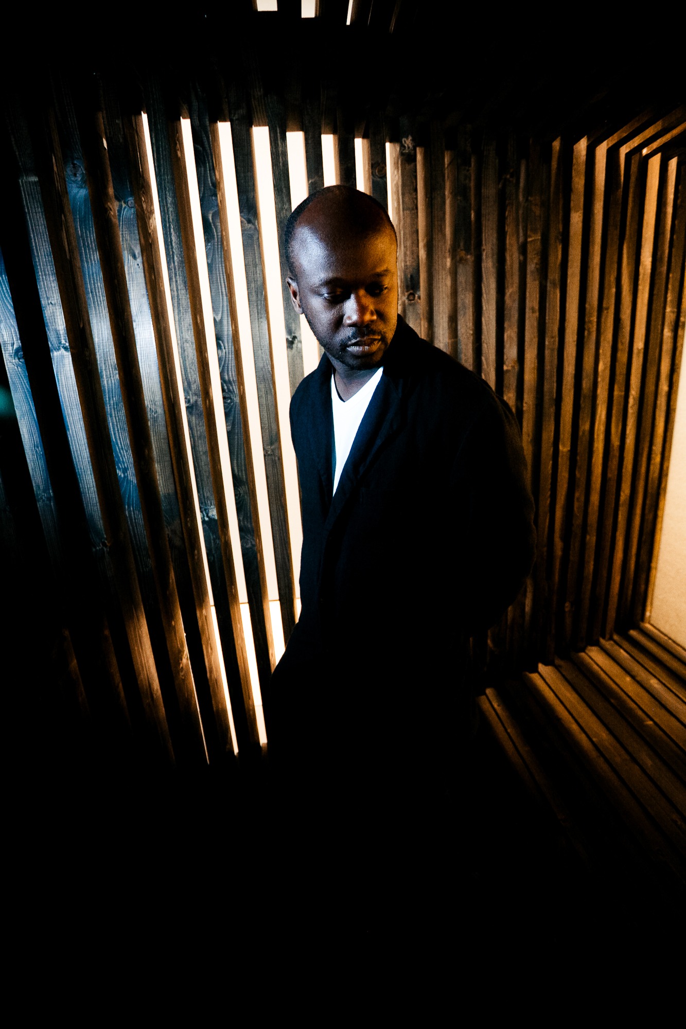 architect David Adjaye with one of his new sculptures at the Albion Gallery, London